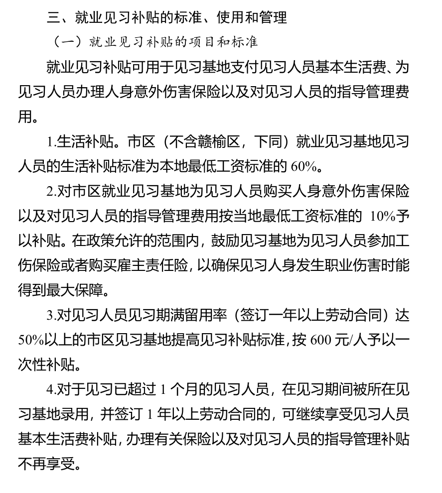 政策类别 (就业+创业) | 政策项目 | 见习补贴 |