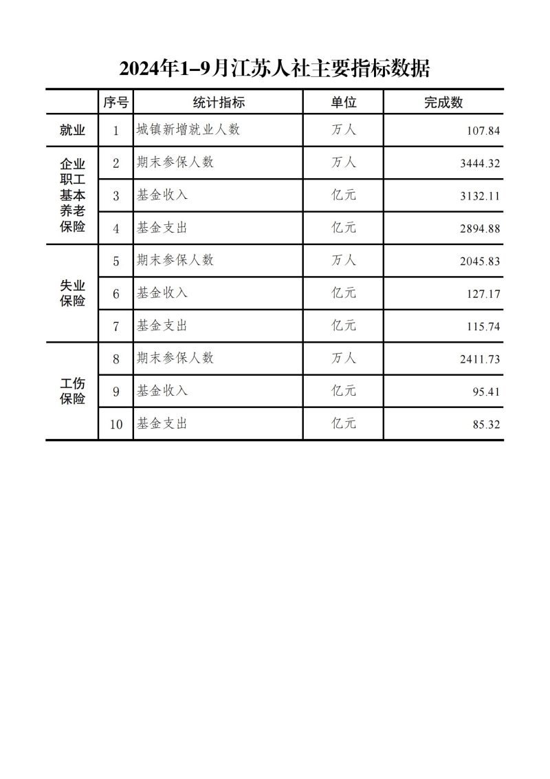 2024年1-9月江苏人社主要指标数据