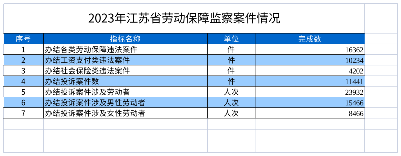 2023年江苏省劳动保障监察案件情况