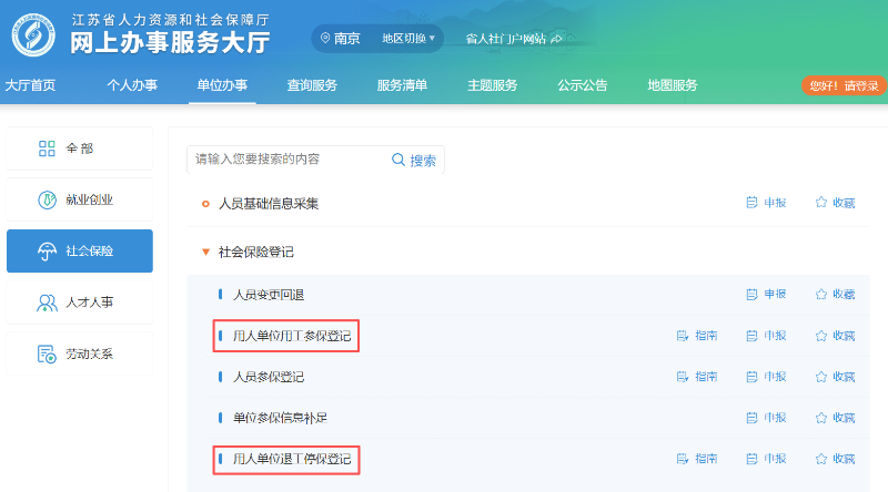 具体操作如下:通过“网上办事服务大厅—单位办事—社会保险—社会保险登记—用人单位用工参保登记”模块办理用工参保业务。