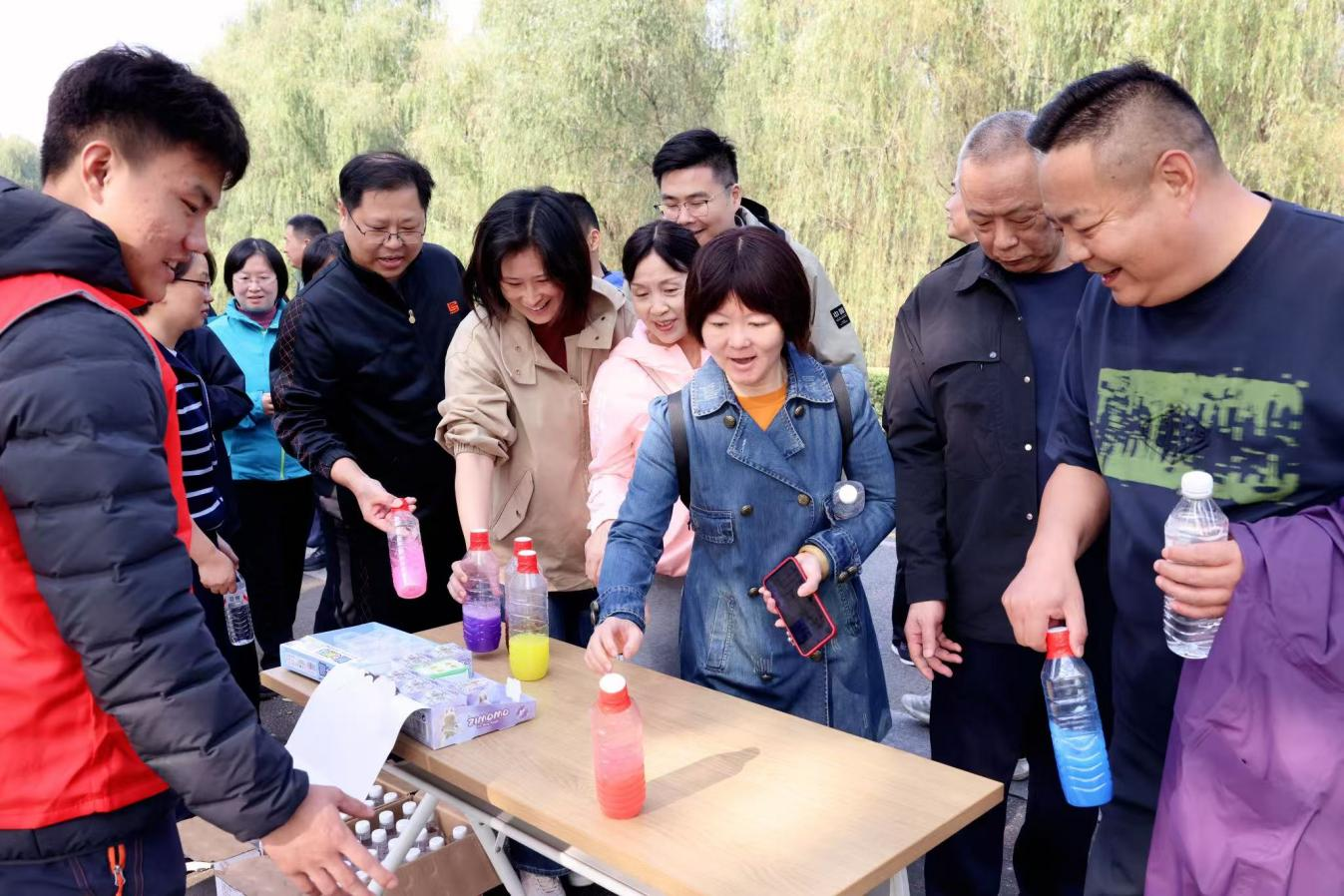 上午 9 时许,干部职工们迈着矫健的步伐出发,大家笑容满面、精神饱满,整齐列队、秩序井然,成为滨江秋色中一道昂扬向上的流动风景线,引来路人纷纷点赞。本次活动打破传统“分散走湖”的单一模式,创新采取“定向健步走+趣味打卡”方式,让运动兼具目标感与趣味性。活动沿鱼嘴湿地公园大广场至南京眼步行桥展开,全程约5公里的路途中,3个特色打卡点错落分布,干部职工通过完成创意拍照、协作小游戏等任务即可通关。