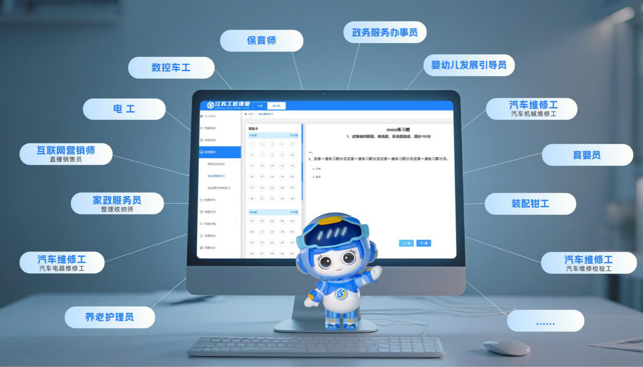 已上线试题:苏巧巧优先从民生服务、工业制造、现代服务等领域,精心挑选市场需求旺盛、发展前景广阔的13个热门职业(工种)试题上线!他们是电工、车工(数控车工) 、汽车维修工(汽车电器维修工、汽车机械维修工、汽车维修检验工)、政务服务办事员、装配钳工、互联网营销师(直播销售员)、保育师、家政服务员(整理收纳师)、养老护理员、婴幼儿发展引导员、婴幼儿发展引导员(育婴员)。后续更多职业(工种)练习试题将陆续上线!